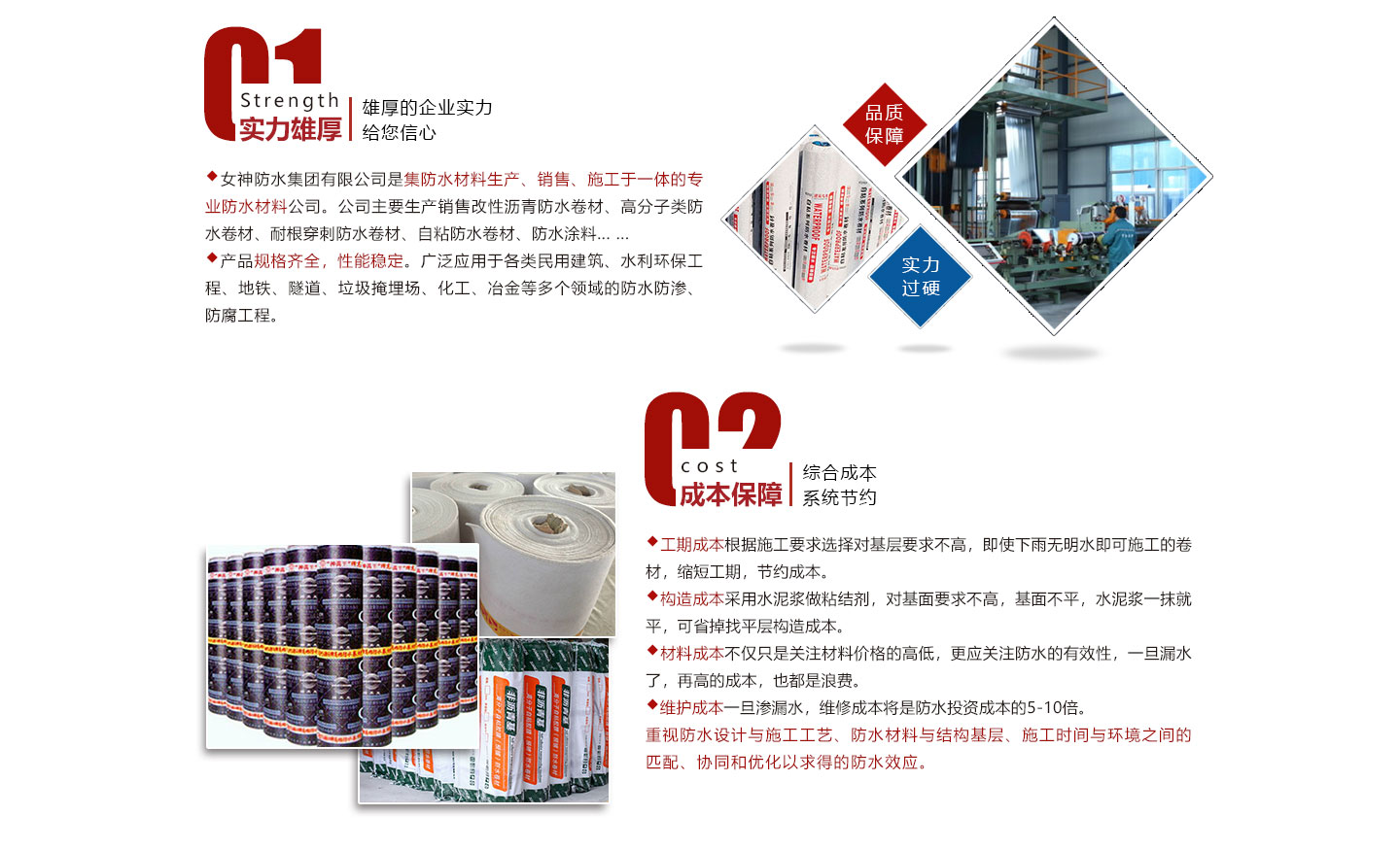 安徽女神建材科技集團有限公司是集防水材料研發(fā)、生產(chǎn)、銷售、施工為一體的綜合性防水材料集團公司。我公司旗下有多條大型一次成型生產(chǎn)線:SBS改性瀝青防水卷材,DTM聚酯復合高分子防水卷材,非瀝青基高分子防水卷材,PVC,TPO高分子防水卷材等生產(chǎn)線。我公司秉承“創(chuàng)新發(fā)展、實惠用戶”為宗旨,確保生產(chǎn)材料基礎(chǔ)上推出“共享生產(chǎn)廠家”,為開發(fā)商、建筑商節(jié)約成本為理念,新理念受到用戶企業(yè)集采時一致好評和認可。在互聯(lián)網(wǎng)時代,我公司將以互聯(lián)網(wǎng)“共享”為發(fā)展理念,為開發(fā)商、建筑商、防水企業(yè)提供的產(chǎn)品,真正讓用戶企業(yè)達到巨大...